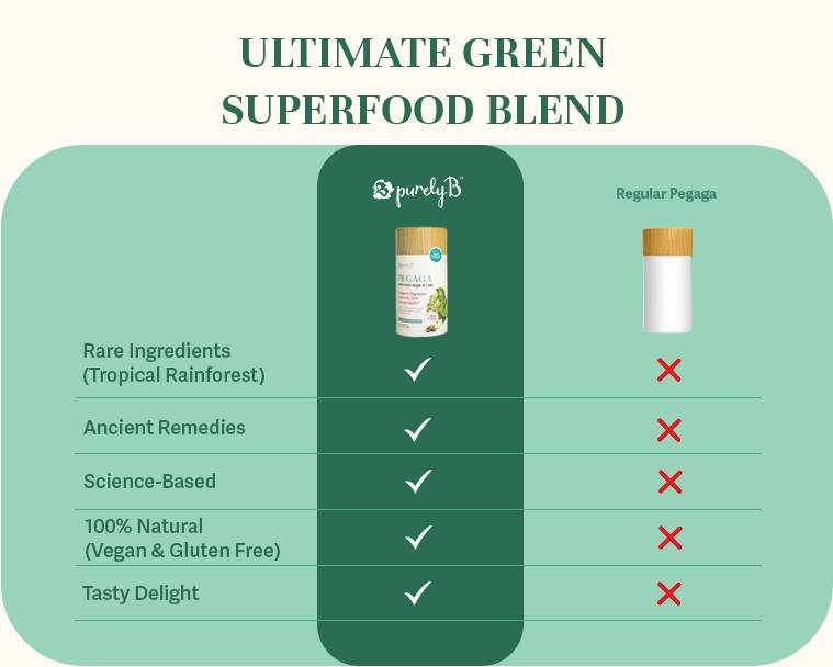 Pegaga (Gotu Kola), turmeric leaf and papaya leaf are 3 of the most powerful leaves of the tropics. PurelyB combines all 3 in unique ancient formulation that preserve its optimal benefits. They have immense healing benefits and are a living medicine.